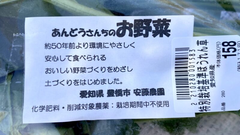 豊橋市安藤農園の特別栽培基準ほうれん草を購入。あんどうさんちのお野菜