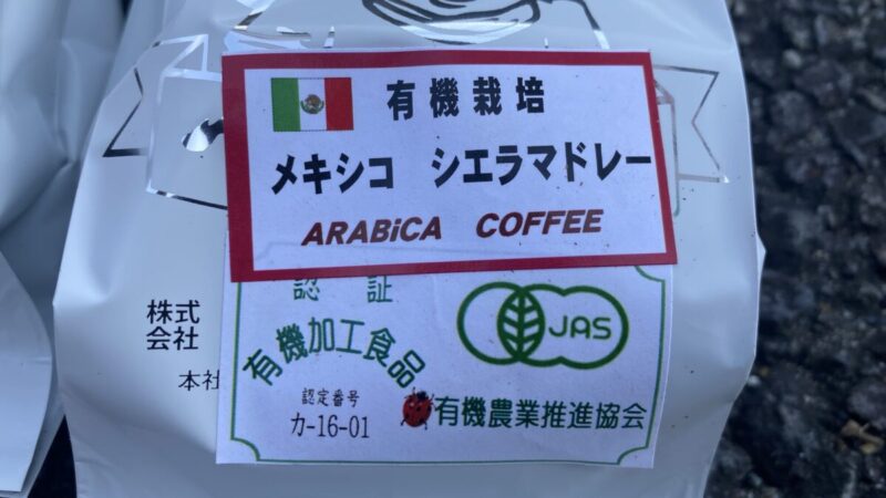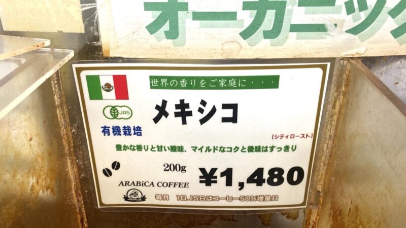 コーヒー豆は2種、100gずつくらい買いたいなと思っていて、気になったのがこのメキシコの有機栽培豆。
