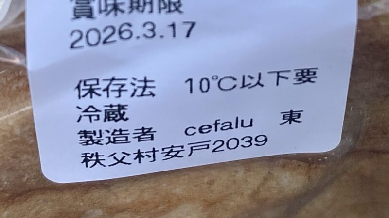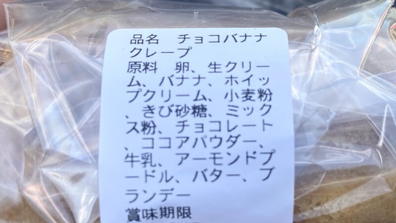 cefaluのチョコバナナクレープの原材料表示↑