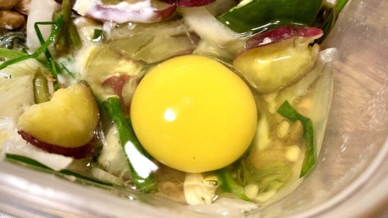 あとは来る途中に買った、平飼い有精卵もトッピング。