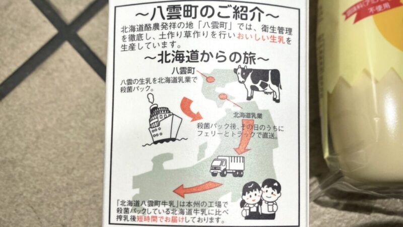 搾乳後すぐに北海道で殺菌パックをしているので、おいしいのだと書いてあります。