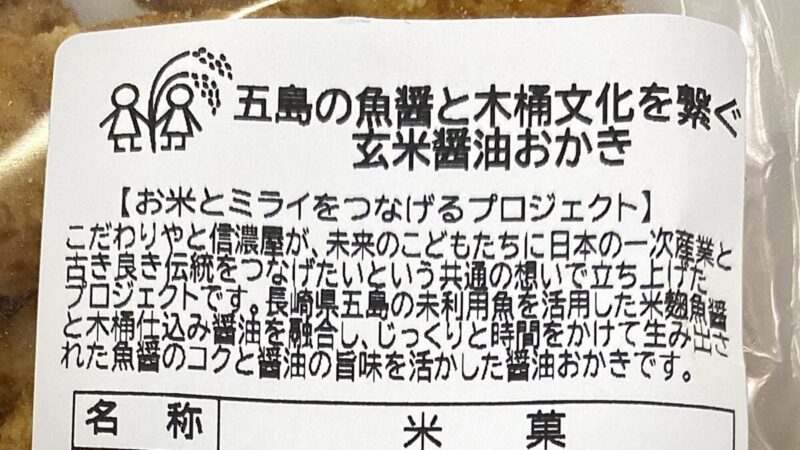 「五島の魚醤と木桶文化を繋ぐ玄米醤油おかき」が商品名です。