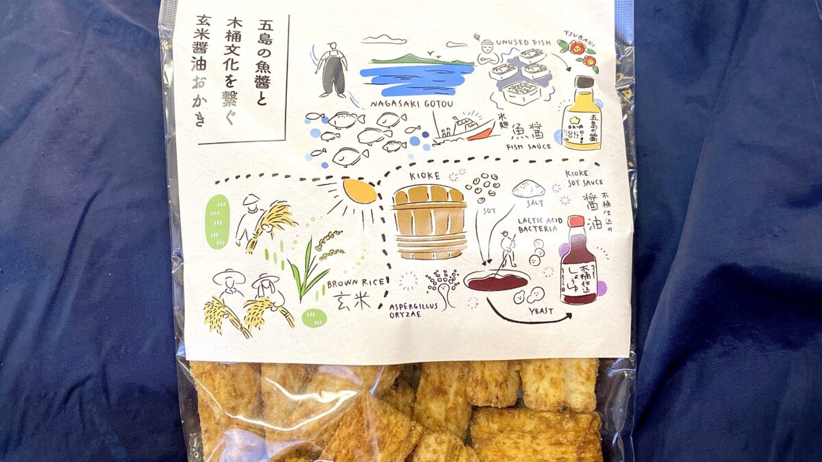 「五島の魚醤と木桶文化を繋ぐ玄米醤油おかき」が商品名です。
