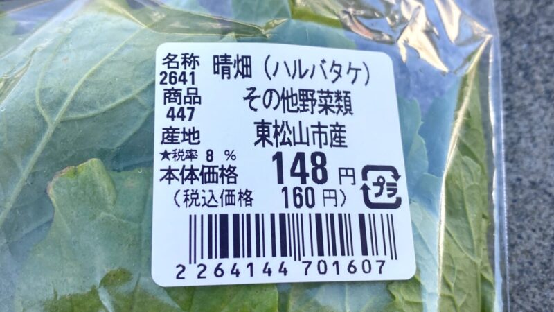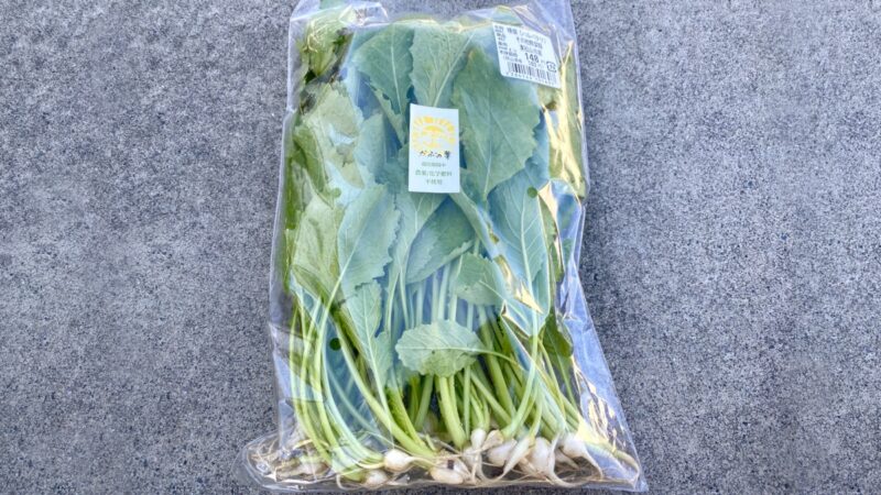 今回は、晴畑(ハルバタケ)さんの農薬/化学肥料不使用のかぶの葉を買いました。