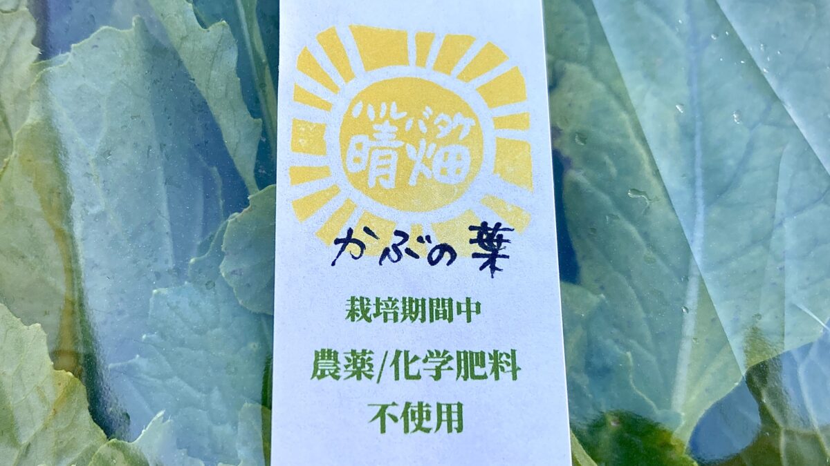 今回は、晴畑(ハルバタケ)さんの農薬/化学肥料不使用のかぶの葉を買いました。
