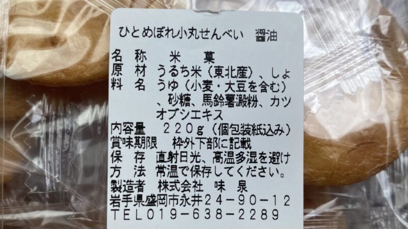 原材料名 うるち米(東北産)、しょうゆ、砂糖、馬鈴薯澱粉、カツオブシエキス