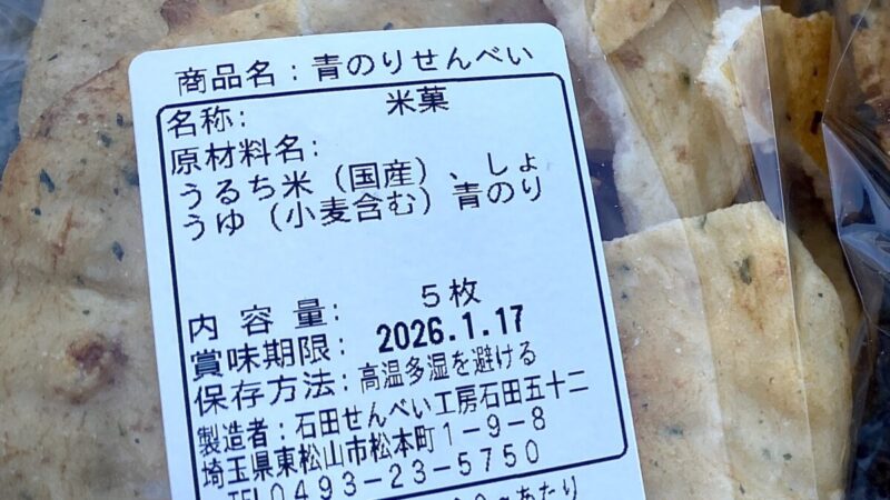 今回は、「青のりせんべい」と「ごませんべい」を買いました。