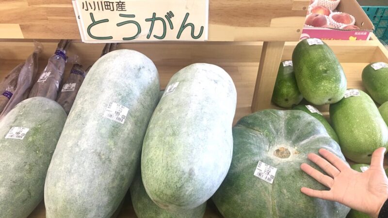 これは数年前に撮った写真だけど、こんな巨大冬瓜が並んでいることもあった。