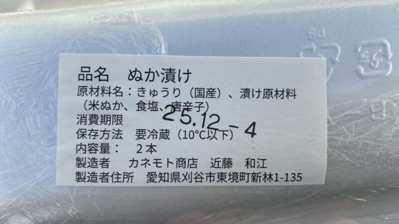 愛知県刈谷市でとてもシンプルな原材料のぬか漬けを見つけた。