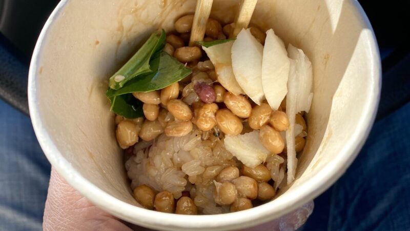 ちょうどお昼時だったので、何かないかなと探したら、赤飯おにぎりを売っていた。