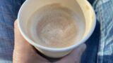 まずは、この日の朝に買ったカフェラテのカップを茶碗代わりにして、そこに赤飯おにぎりを投入。