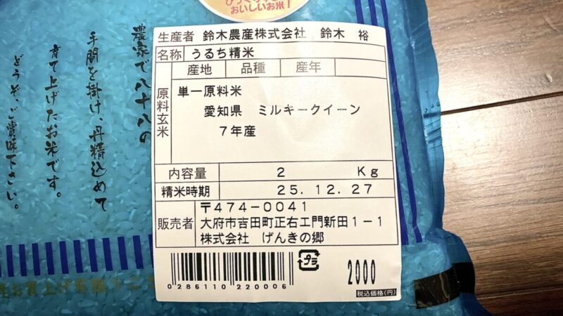 愛知県大府市にある、JAあぐりタウンげんきの郷で、特別栽培米のミルキークイーンを購入。