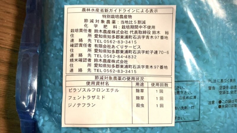 他にも特別栽培米はいくつかあったんだけど、一番使用している農薬の種類が少ないものにした。