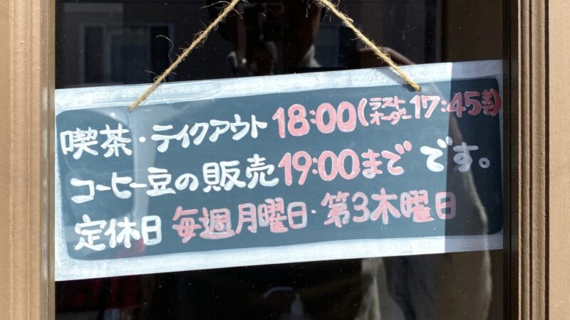 喫茶・テイクアウト 18:00(ラストオーダー17:45まで)