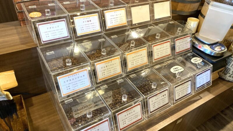 さらに奥にもコーヒー豆が並んでいた。