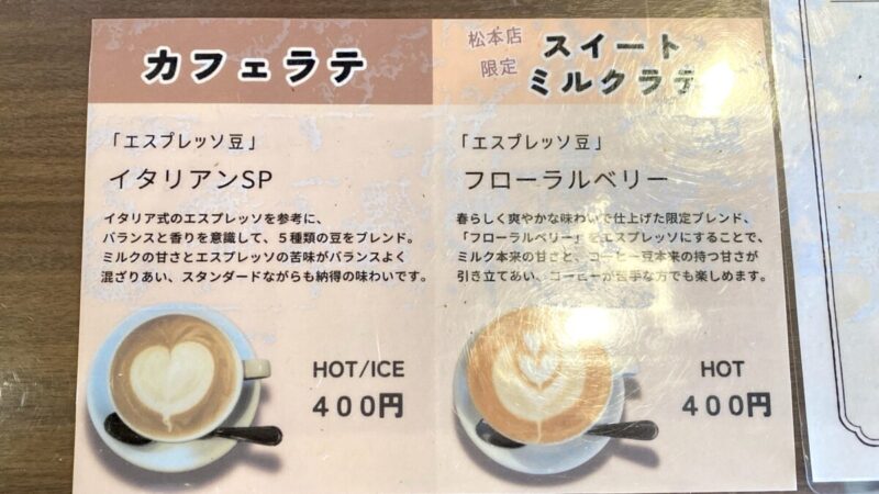 松本店と塩尻店は、cafe&beans shopと謳っているように、コーヒー豆の販売のほかに、カフェも併設されているようだ。