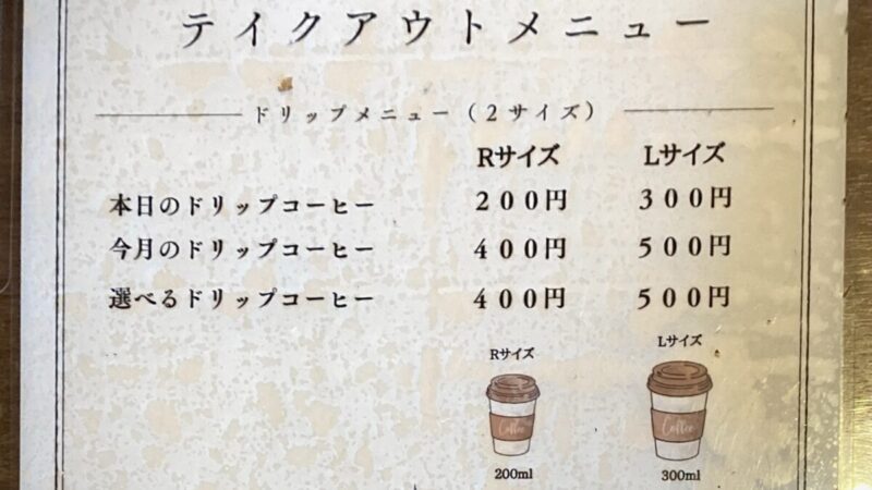 三澤珈琲松本店のテイクアウトメニュー↑