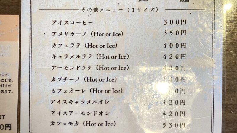 ホットとアイスがあって、1サイズ。