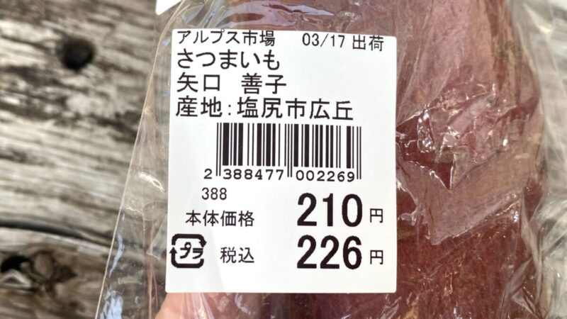 購入したのは、長野県松本市の「生産者直売所アルプス市場」。