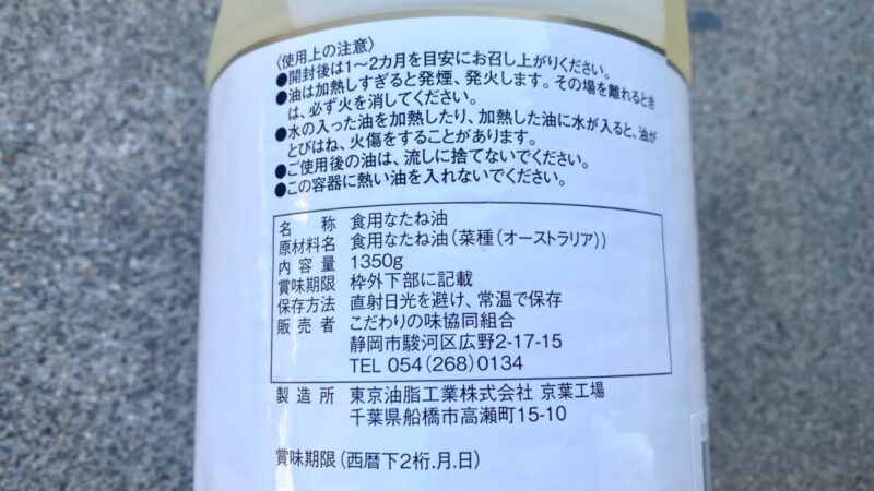 そこで、自然の味®︎さんの「圧搾しぼり菜種油」の1350gという大きなサイズのものを購入した。