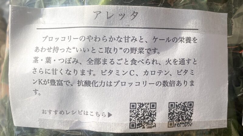 ブロッコリーの甘さとケールの栄養を併せ持った野菜だそうです。
