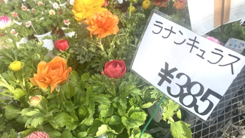 園芸コーナーで咲いていたラナンキュラスがとても綺麗で、しばし眺めていました。