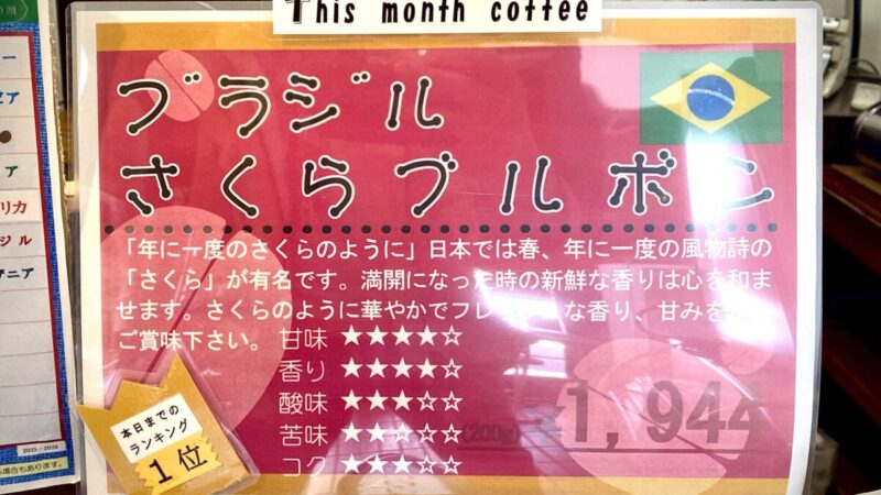 ブラジルさくらブルボンという、焙煎豆を買った。