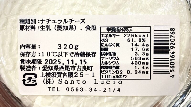 そんなある日見つけたのが、SANTO LUCIO®︎さんのフレッシュチーズQUEIJO FRESCAL 320g。