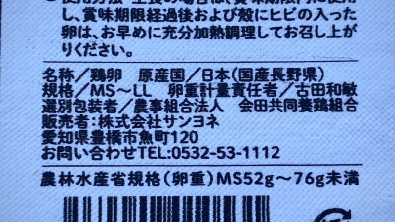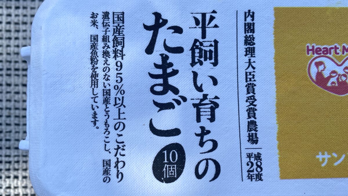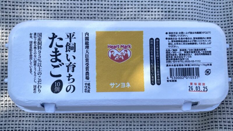豊橋のスーパーサンヨネで、「平飼い育ちのたまご10個」を購入した。