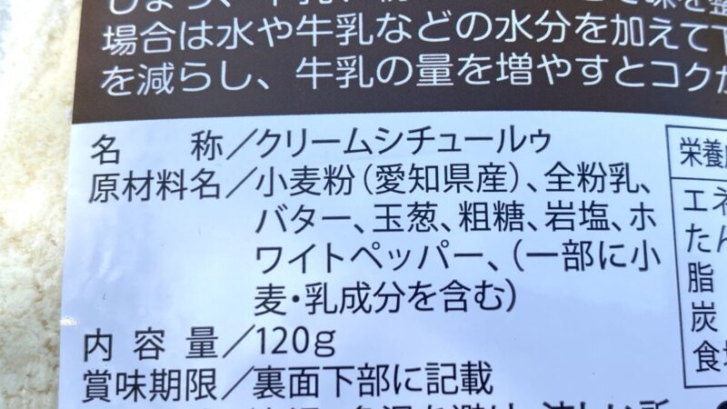 原材料名:小麦粉(愛知県産)、全粉乳、バター、玉葱、粗糖、岩塩、ホワイトペッパー