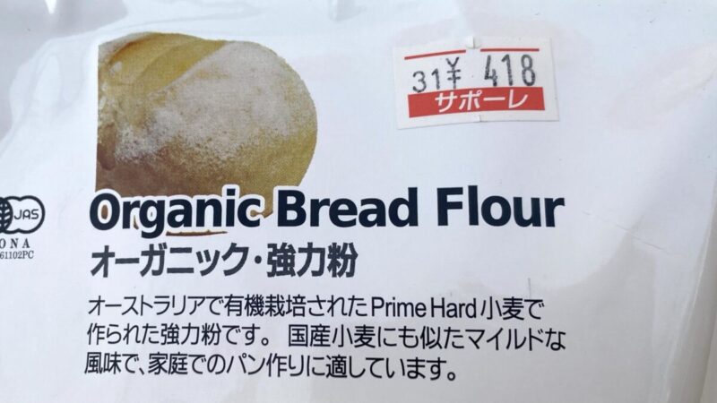 いわゆる賞味期限間近コーナーもあって、そこであったのがこのオーガニック強力粉。