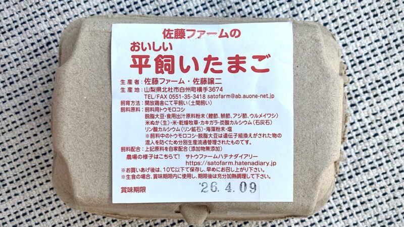 佐藤ファームのおいしい平飼いたまご、という平飼い卵を買った。