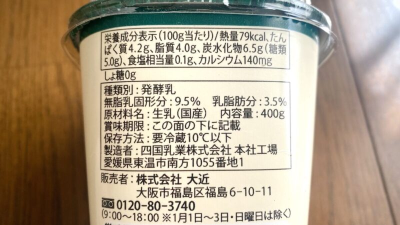 Pantry&Lucky「生乳100%ヨーグルト」の、原材料表示↑