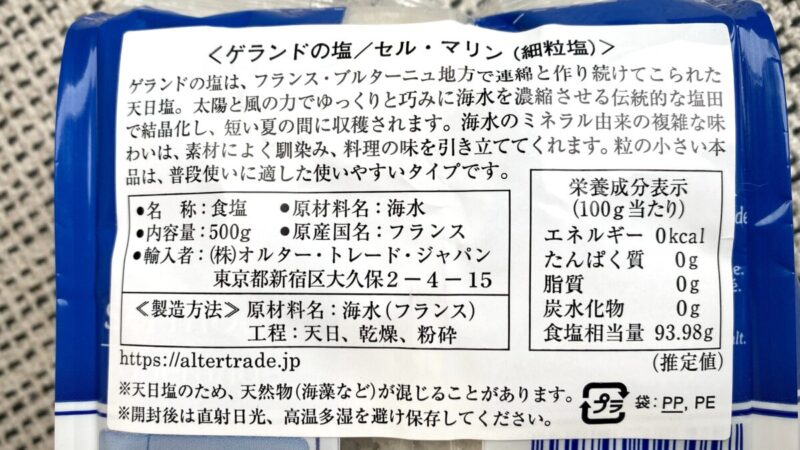 そもそもフランスでの仕入れ先が違うのか、同じ塩だけど各社でパッケージを変えているのかなど、細かなことは不明。