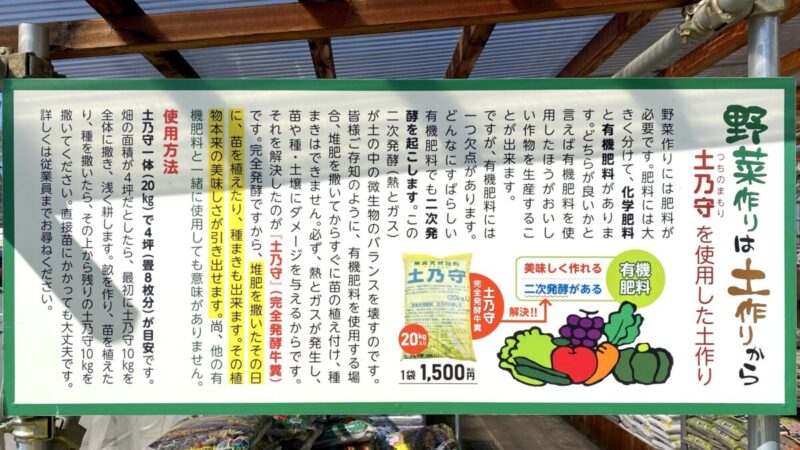 土乃守は完全発酵堆肥なので、二次発酵せず、撒いたその日に苗を植えたり、種まきできる